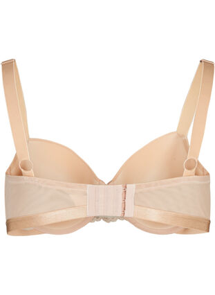 Ten piekny, prosty biustonosz ma fiszbiny i profilowane miseczki. Ma tez szerokie, regulowane ramiaczka i jest bardzo wygodny. Biustonosz ma boki z siateczki z miekka satynowa gumka i delikatna koronka oraz kokardke miedzy miseczkami, co zapewnia kobiecy wyglad.