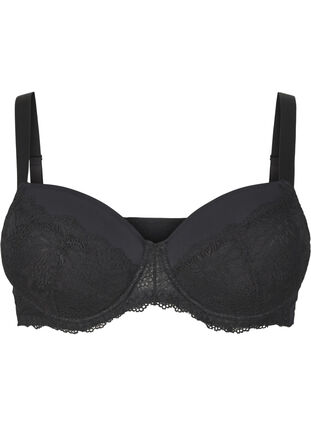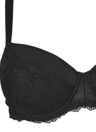 Biustonosz z fiszbinami z delikatna koronka na miseczkach i w panelu srodkowym, z usztywnianymi miseczkami, które modeluja i podnosza biust, tworzac symetryczna sylwetke. Biustonosz ma szerokie, regulowane ramiaczka i wysokie szwy boczne dla maksymalnego komfortu.