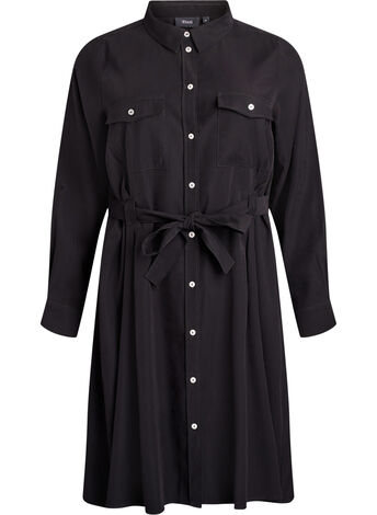 Sukienka koszulowa z wiazanym paskiem i dlugimi rekawami