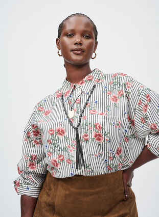 Koszula z nadrukiem kwiatowym i waskimi paskami
