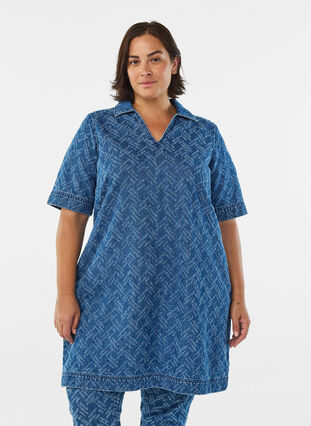Krótka dzinsowa sukienka z teksturowanym wzorem