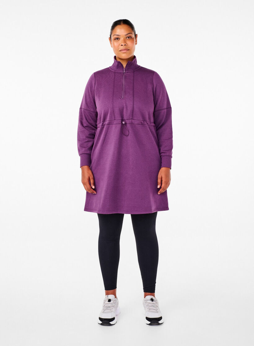 Krótka sukienka dresowa z miekka, szczotkowana strona wewnetrzna, z dlugimi rekawami z mankietami i wysokim dekoltem z krótkim zamkiem. Ta dresowa sukienka ma wygodny krój i regulowany sznurek w pasie.