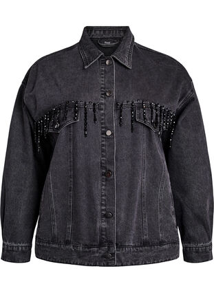 Kurtka jeansowa z perelkowymi fredzlami