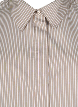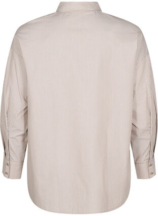 Koszula w paski, z kolnierzykiem i zapieciem na guziki. Koszula jest wykonana z lekkiego materialu zawierajacego w 65% poliester z recyklingu, ma dlugie rekawy z mankietami i guzikami oraz luzny i wygodny krój.