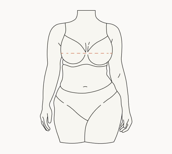 W celu wyznaczenia rozmiaru biustu zmierz go w najszerszym miejscu. Centymetr powinien zostać rozciągnięty poziomo i znajdować się blisko ciała. Jeśli podczas samodzielnego przeprowadzenia pomiaru masz na sobie biustonosz, nie może on być zbyt ciasny, ponieważ w takiej sytuacji pomiar będzie niepoprawny.