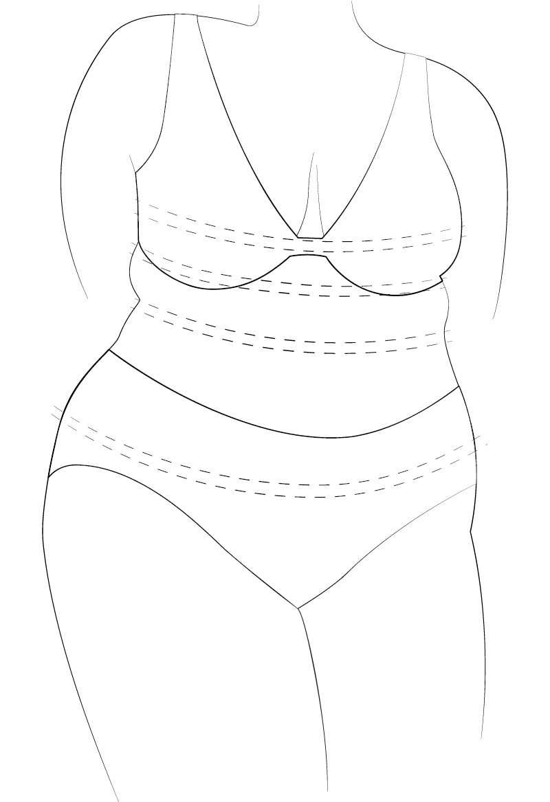 Zmierz się wokół żeber tuż pod biustem.