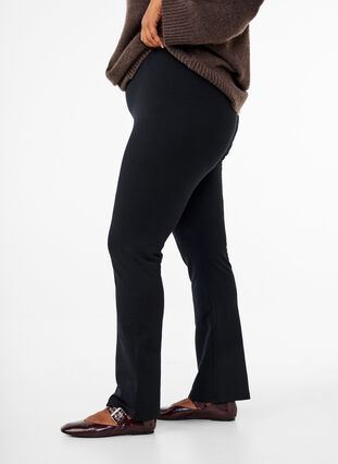 Wygodne spodnie z dzerseju z regularna talia i gumka w pasie. Spodnie sa wykonane z miekkiej bawelny ze szczotkowanym wnetrzem i maja proste nogawki z lekkim rozkloszowaniem.