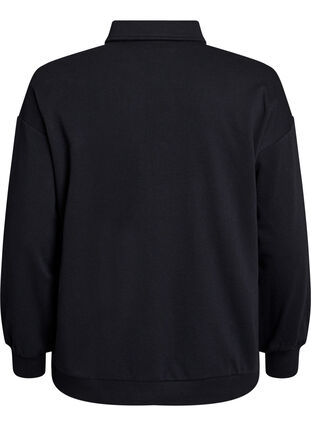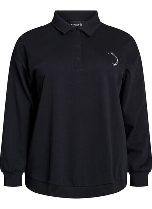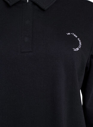 Bluza wykonana z miekkiej i wygodnej mieszanki bawelny z malym, haftowanym sportowym motywem z przodu. Ma kolnierzyk z krótkim zapieciem na guziki, dlugie rekawy, luzny krój oraz sciagacze na rekawach i u dolu.