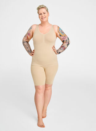 Bielizna modelujaca - szorty z wysoka talia, zaprojektowane, aby ksztaltowac i podnosic, zapewniajac smukla i podkreslona sylwetke pod ubraniem. Szorty wykonane sa z bezszwowego materialu z miekkimi, elastycznymi obszyciami, które zapewniaja maksymalny komfort i swobode ruchów. Wewnetrzne silikonowe paski w talii i przy otworach na nogi utrzymuja szorty na miejscu przez caly dzien, bez podwijania sie i zsuwania. Ukierunkowana kompresja unosi i modeluje posladki, jednoczesnie wyszczuplajac talie, biodra i uda.