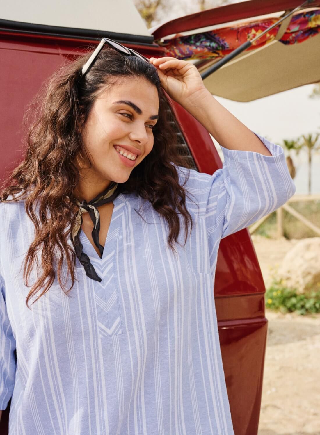 Kolejną zaletą lnu jest to, że nieliczne zagniecenia tu i tam są całkowicie normalne, więc możesz śmiało odłożyć żelazko. Podkreśla to tylko naturalną i lekko chropowatą fakturę materiału i nadaje lnianej sukience szczególnego uroku. Oto dlaczego warto spakować kilka lnianych sukienek do walizki, jeśli wybierasz się na wakacje.