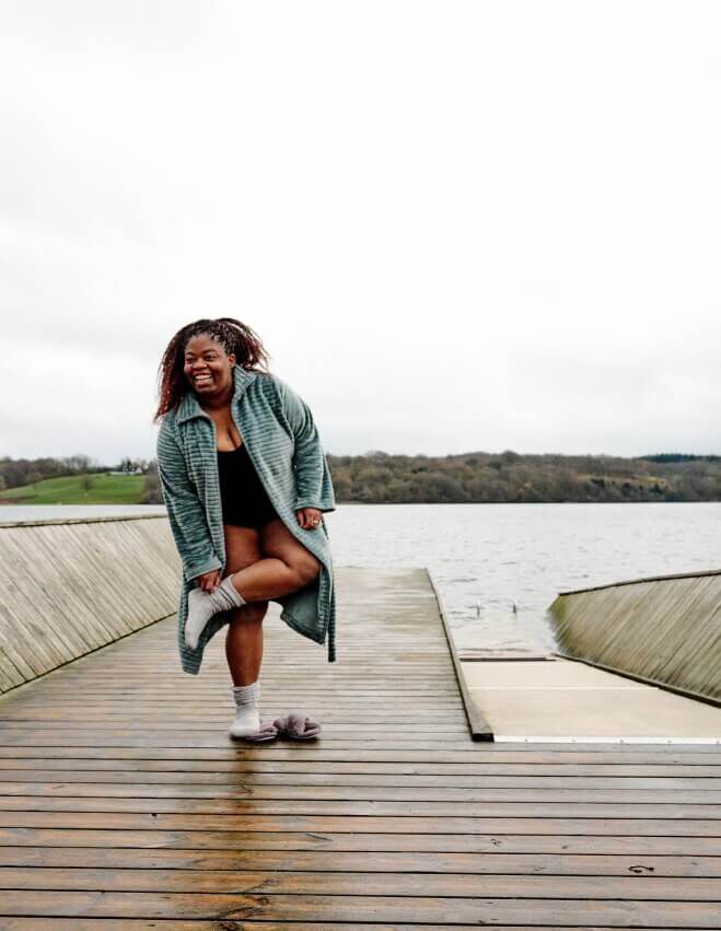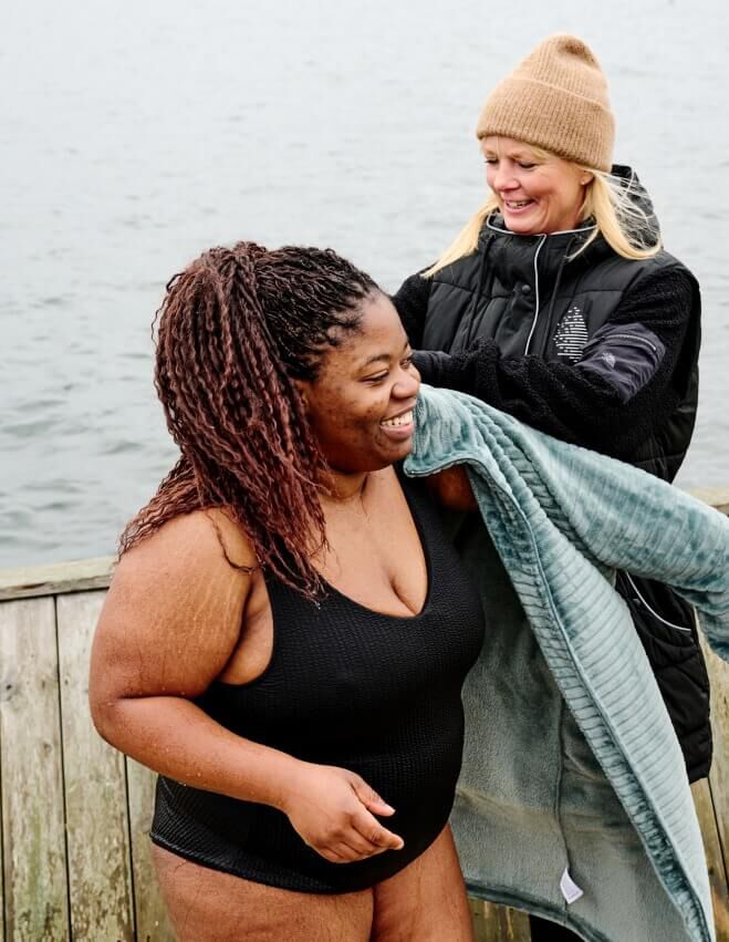 W dzisiejszych czasach często musimy być w wielu miejscach naraz i zawsze mamy przy sobie telefon. Kiedy pływasz zimą, musisz być obecna tu i teraz, a przebywanie na łonie natury i doświadczanie jej może działać na nas jak lekarstwo. Wszystkie zmysły są wybudzone, co daje miłe poczucie spokoju i obecności. Stawia to słowo „zdrowie” w zupełnie nowym świetle, mówi Pia Fosnæs, trenerka osobista.