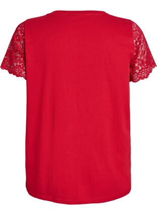 Bawelniany t-shirt z krótkimi, koronkowymi rekawami