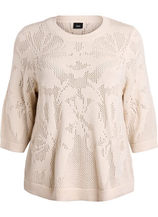 Dzianinowa bluzka z azurowym wzorem i rekawami 3/4
