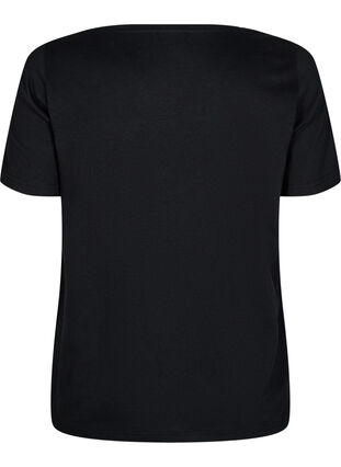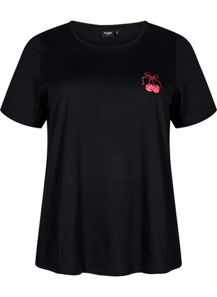 Fajna koszulka z modnym motywem na wysokosci klatki piersiowej. Bluzka ma regularny krój, okragly dekolt i krótkie rekawy.