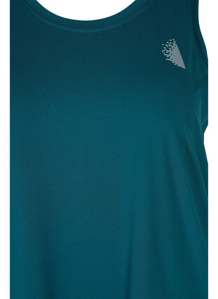 Gladki sportowy top o luznym i wygodnym kroju, wykonany z elastycznego materialu. Top ma okragly dekolt.