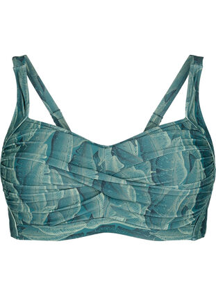 Góra od bikini z pieknym nadrukiem na calej powierzchni. Wykonana z wytrzymalego i szybkoschnacego materialu oraz podszyta siateczka z przodu dla dodatkowego wsparcia i wymodelowania. Ma szerokie regulowane ramiaczka, boczne wzmocnienie zapewniajace dodatkowe wsparcie i lekko wyscielane miseczki z eleganckim drapowaniem z przodu.